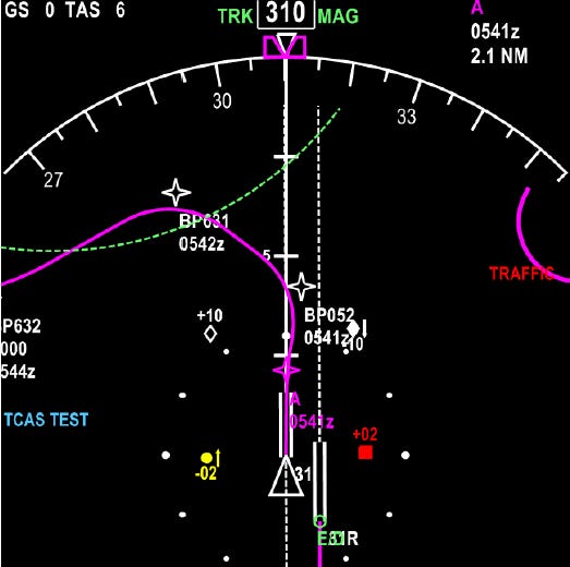 The phrase comes from a classic 1997 training session by legendary American Airlines Captain Warren “Van” Vanderburgh, who warned that pilots were becoming “children of the magenta” - so dependent on following the magenta line (the programmed flight path displayed in magenta on navigation screens, as in the example below) that they’d neglect to or, worse, had entirely forgotten how to, simply fly the airplane.