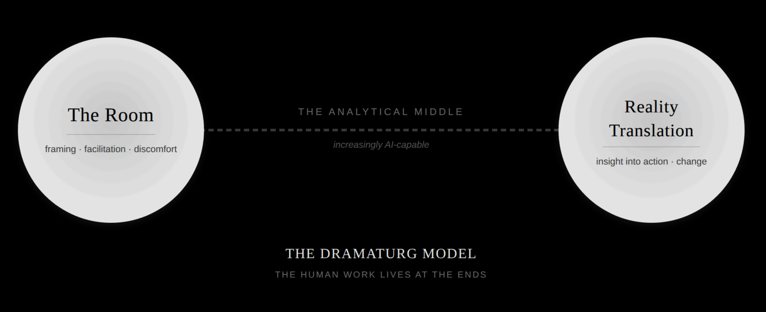 The profession may bifurcate. Practitioners who can articulate what they add beyond analysis, the dramaturgs, will find their work more valued, not less. Practitioners whose value proposition was primarily analytical rigour will face increasing competition from clients who can do that themselves.